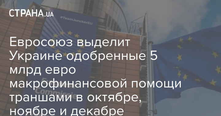 Евросоюз выделит Украине одобренные 5 млрд евро макрофинансовой помощи траншами в октябре, ноябре и декабре