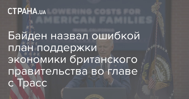 Президент США Джо Байден назвал ошибкой план поддержки экономики британского правительства во главе с премьер-министром Лиз Трасс.