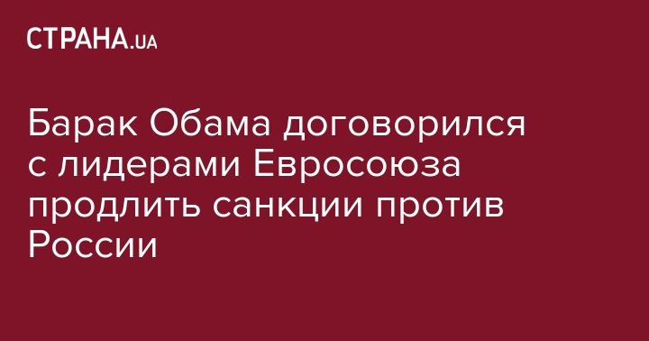 Президент США Барак Обама в ходе последней рабочей поездки в страны Европы достиг договоренности с лидерами ЕС о продлении антироссийских санкций. Об этом сообщает AFP в микроблоге Twitter.
