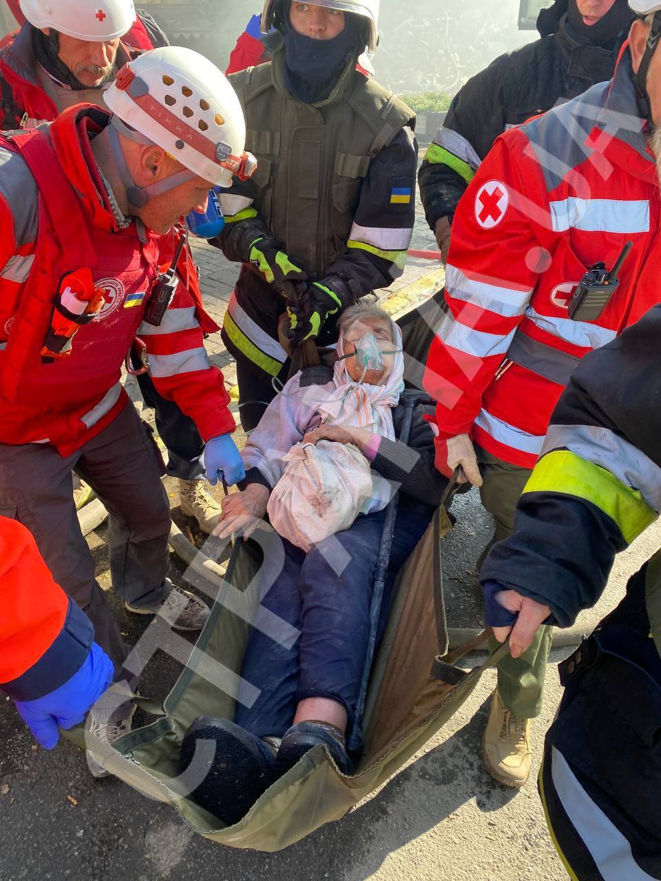 Позже из-под завалов дома на Жилянской в Киеве достали живую бабушку. Ее транспортируют в больницу.