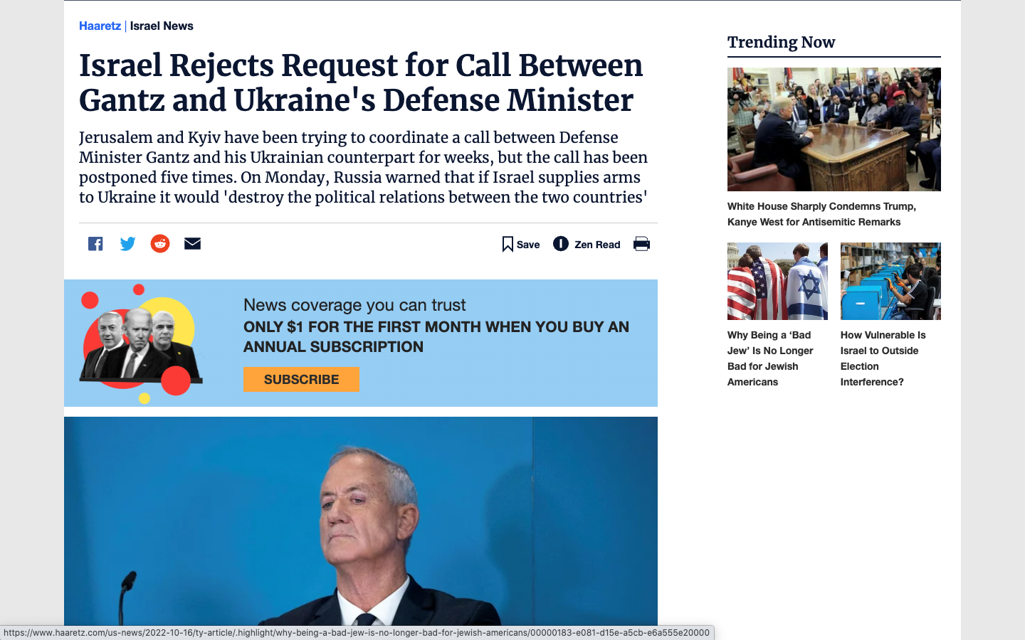 При этом газета "Гаарец" сообщает, что Израиль отклонил запрос Украины на проведение телефонного разговора между министрами обороны двух стран Бени Ганцем и Алексеем Резниковым.