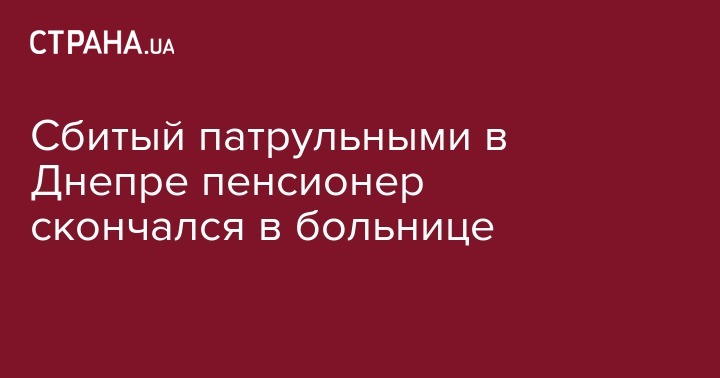 Сегодня скончался пенсионер, которого сбили патрульные полицейские в Днепре в начале ноября, сообщает УНН. По словам Александра Толубаева, заместителя главврача по оказанию экстренной медицинской помощи Днепропетровской областной клинической больницы им. Мечникова, мужчина умер прямо в больнице.  прозошло в больнице