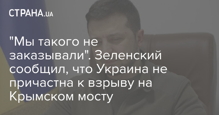 Президент Украины Владимир Зеленский заявил, что, "насколько ему известно", Украина не является заказчиком взрыва на Крымском мосту.