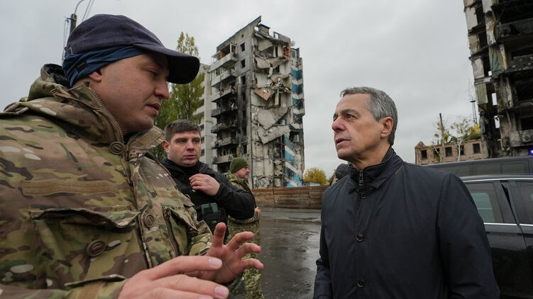 Прибывший в Украину президент Швейцарии посетил Бородянку и Иванков в Киевской области. Фото