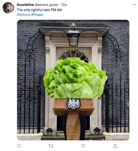 Многие вспомнили о "гонке" Трасс с салатом-латуком. Соревнование-троллинг между премьером и кочаном салата началось после статьи издания Economist, в котором авторы подсчитали, что Лиз Трасс смогла "удерживать ситуацию под контролем" в течение семи дней, и сравнили этот период со сроком годности латука.