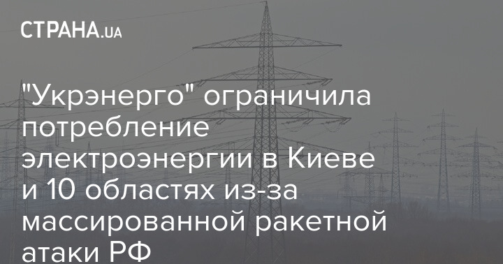 "Укрэнерго" ограничила потребление электроэнергии в Киеве и 10 областях из-за массированной ракетной атаки РФ