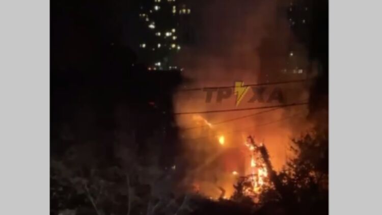 Появилось видео мощного пожара возле жилого комплекса на столичных Осокорках