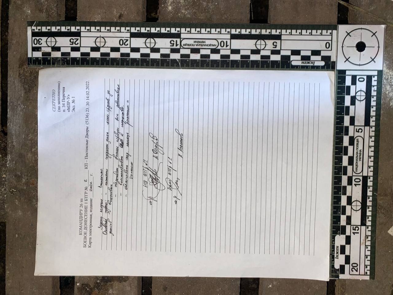 "Среди выявленных вещественных доказательств – секретное боевое распоряжение военных РФ на вторжение на территорию Украины, топографическая карта Харьковской области по маршруту движения, списки личного состава военнослужащих ВС РФ танковых бригад, документы структурных подразделений ВГА Изюмского района, учебных заведений, медицинских предпринимателей и коммунальных предприятий".