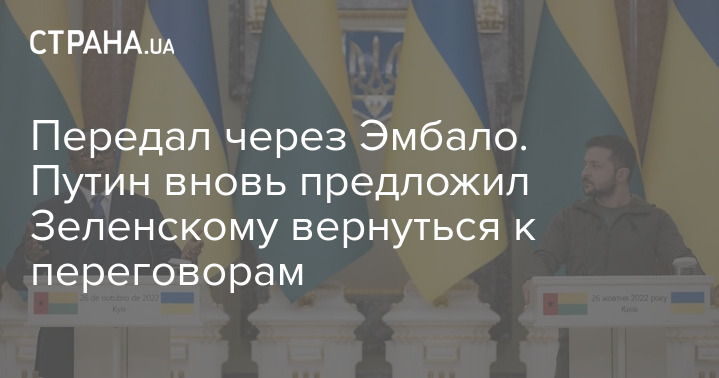 Зеленский прокомментировал "предложения от Владимира Путина", переданные ему президентом Гвинеи-Бисау Умару Сиссоку Эмбало.