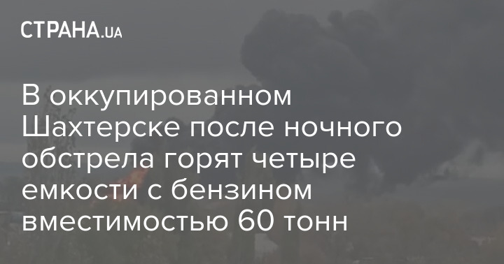 "МЧС ДНР" заявляет, что в Шахтерске после нового обстрела территории железнодорожной станции горят четыре емкости с бензином вместимостью 60 тонн.