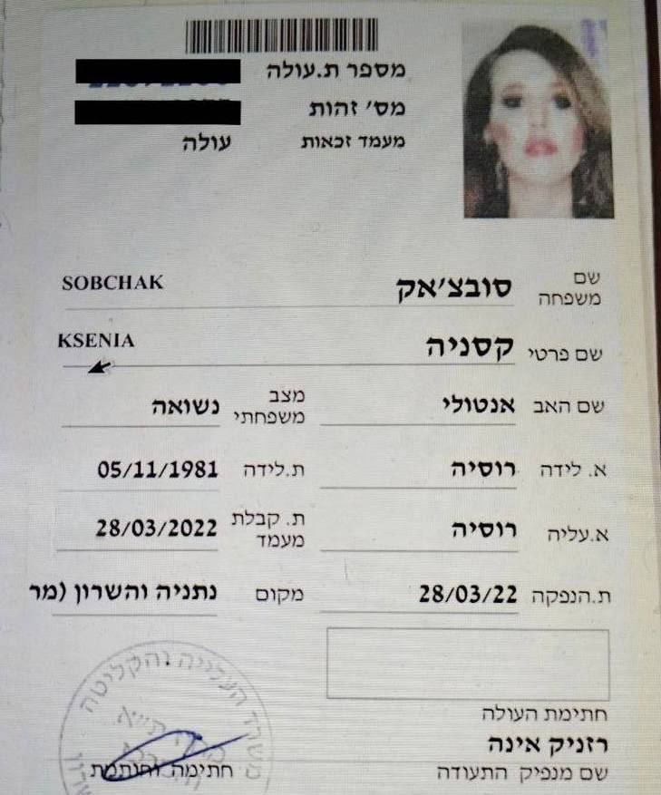 Согласно фото, журналистка получила данный паспорт 20 сентября (а подала на него заявку ещё в марте). Российские СМИ пишут, что в тот день ее видели у израильского посольства в Москве со своим бывшим супругом Максимом Виторганом.
