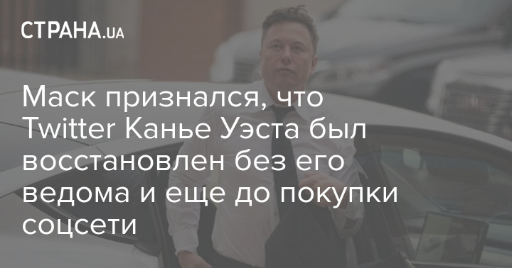 Илон Маск сообщил, что аккаунт американского рэпера Канье Уэста в Twitter был восстановлен без его ведома и еще до завершения сделки по покупке компании.