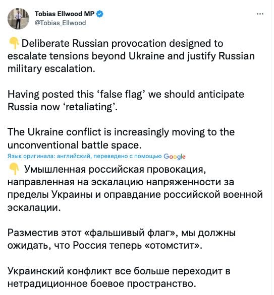 22.23 Британский депутат Тобиас Эллвуд заявил, что после обвинений РФ о причастности Британии к нападению на Черноморский флот, которые он называет «фальшивым флагом», стоит ожидать "мести" Москвы.