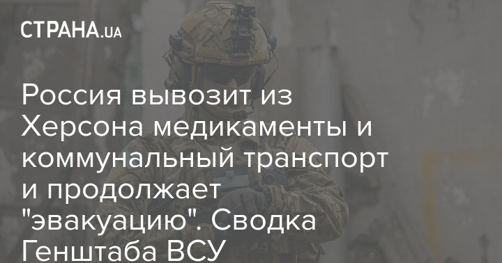 Россия вывозит из Херсона медикаменты и коммунальный транспорт и продолжает "эвакуацию". Сводка Генштаба ВСУ
