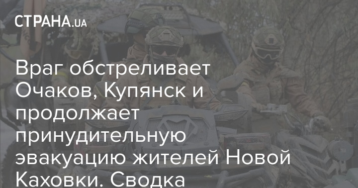В Генеральном штабе Вооруженных сил Украины опубликовали оперативную сводку с фронта по состоянию на 18:00 30 октября. Сообщается, что российские войска обстреливают Очаков и Купянск, а также продолжают принудительную эвакуацию жителей Новой Каховки.