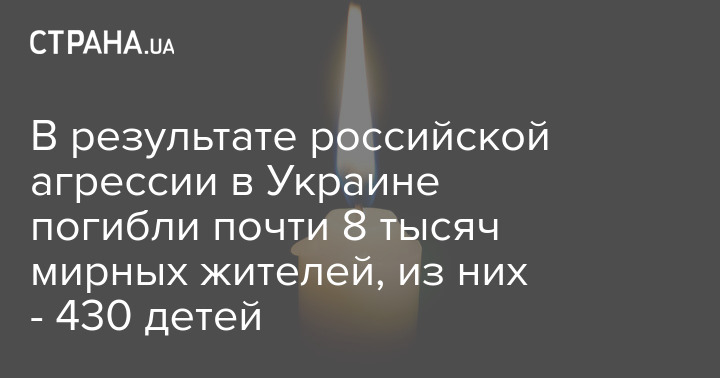 В результате российской агрессии в Украине погибли почти 8 тысяч мирных жителей, из них - 430 детей