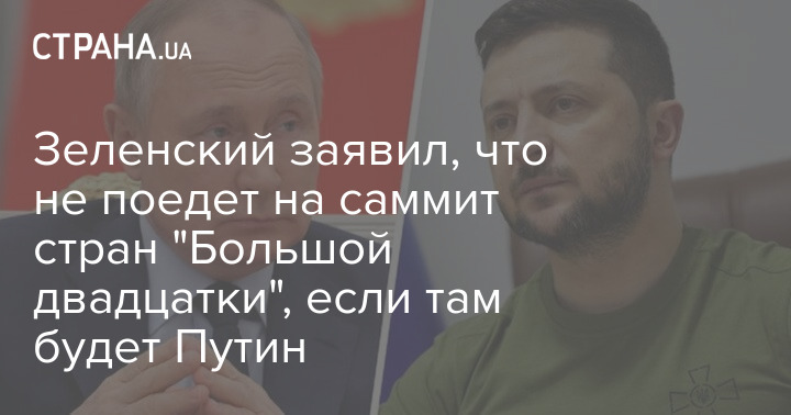 Зеленский заявил, что не поедет на саммит стран "Большой двадцатки", если там будет Путин