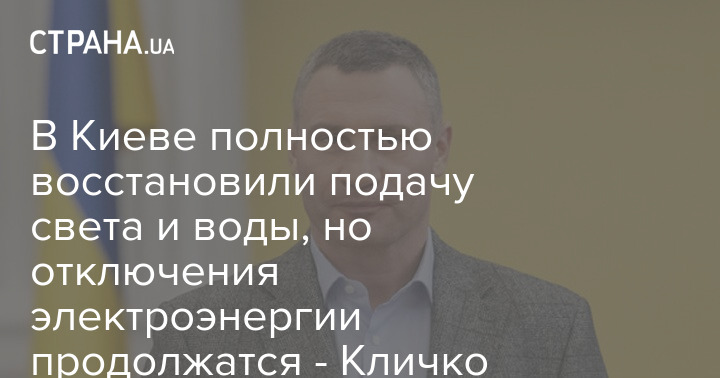Мэр Киева Виталий Кличко заявляет, что всем киевлянам вернули водоснабжение и электричество. Но свет продолжат отключать, поскольку есть значительный дефицит в энергосистеме после ракетных ударов.