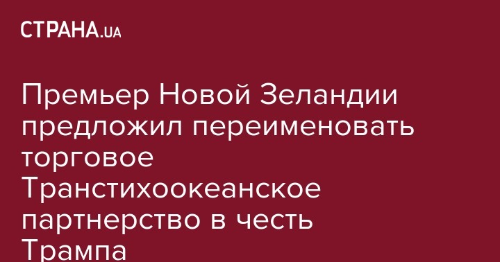 Премьер-министр Новой Зеландии Джон Ки предложил переименовать соглашение о Транстихоокеанском партнерстве (ТТП) в Трамптихоокеанское партнерство. Об этом сообщает The Guardian.