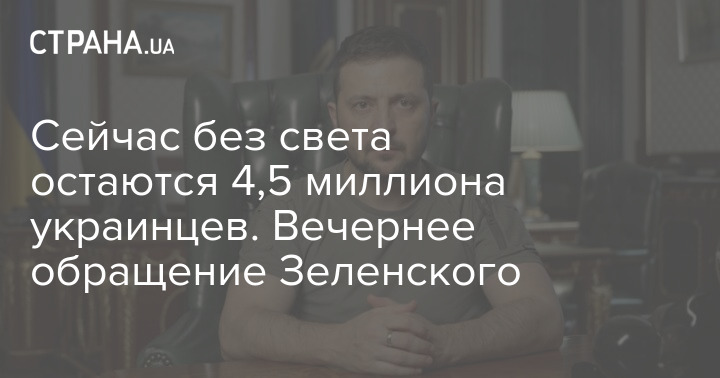 По словам Зеленского, минувшей ночью иранские дроны атаковали Кривой Рог. По всей Украине на текущий вечер без света остаются 4,5 миллиона потребителей. Зеленский призвал местные власти следить за экономией электричества.