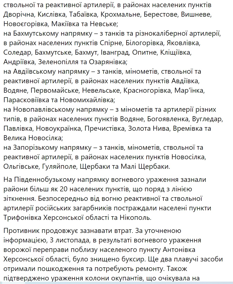 1. Противник ведет наступательные действия в Бахмутском, Авдеевском и Новопавловском направлениях.