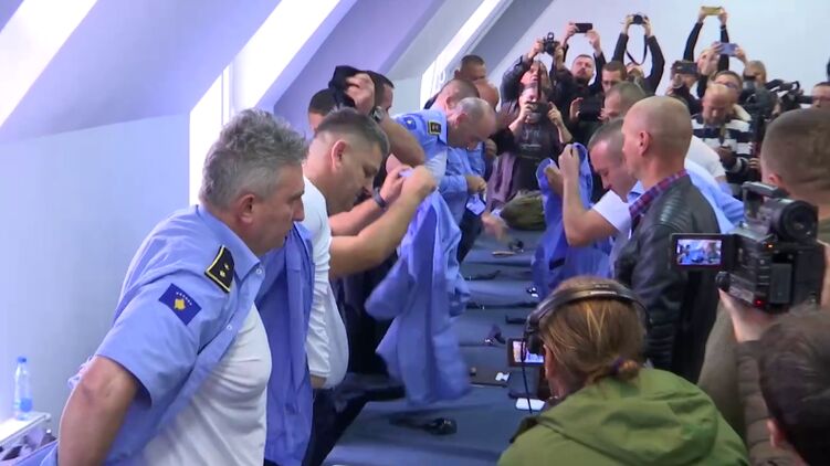 Полицейские сербского происхождения демонстративно уволились из правоохранительных органов. Они заявили об этом публично и на камеру сняли с себя форменные рубашки.