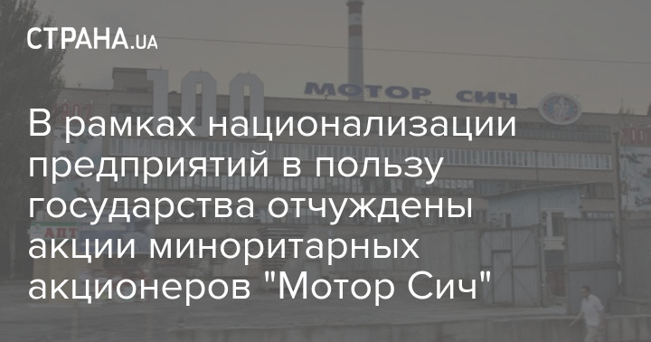 В рамках национализации предприятий в пользу государства отчуждены акции миноритарных акционеров "Мотор Сич"