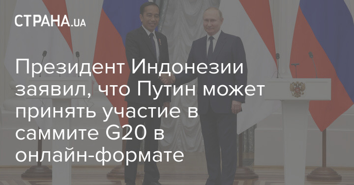 Президент России Владимир Путин может поучаствовать в саммите G20 в онлайн-формате, как и украинский президент Владимир Зеленский, сообщил президент Индонезии Джоко Видодо.