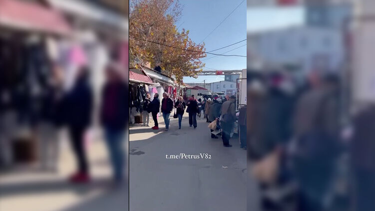 В оккупированном городе продолжается активная торговля. Скриншот из видео