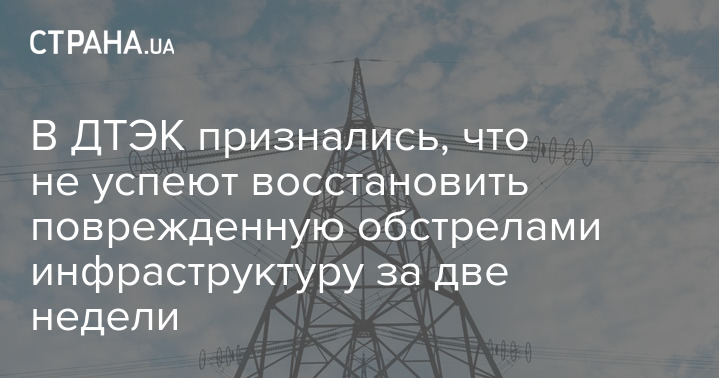 Донбасская топливно-энергетическая компания (ДТЭК) не сможет восстановить поврежденную инфраструктуру за две недели, как говорили ранее.
