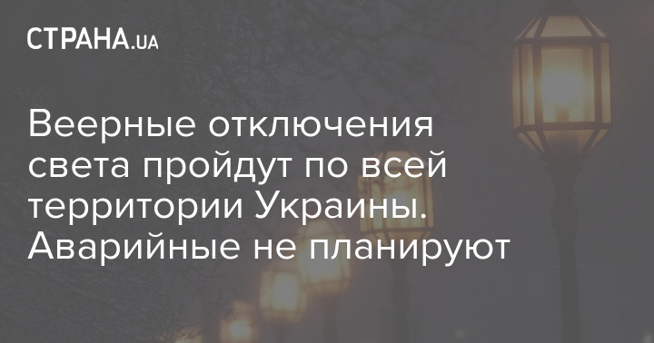 Веерные отключения света пройдут по всей территории Украины. Аварийные не планируют