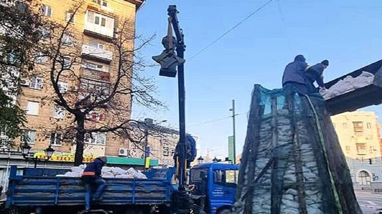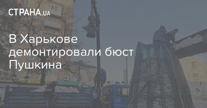 Демонтаж бюста Александра Пушкина в Харькове. Фото: соцсети