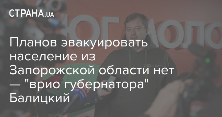 Назначенный россиянами "врио губернатора" Запорожской области Евгений Балицкий заявил, что в связи с событиями в Херсонской области причин для эвакуации населения из региона нет. По его словам, границы надежно охраняются.