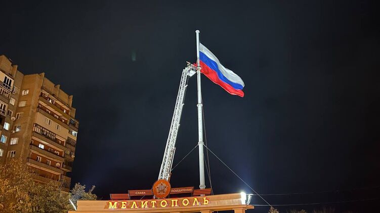 В Мелитополе вернули флаг РФ на флагшток. Фото: Телеграм