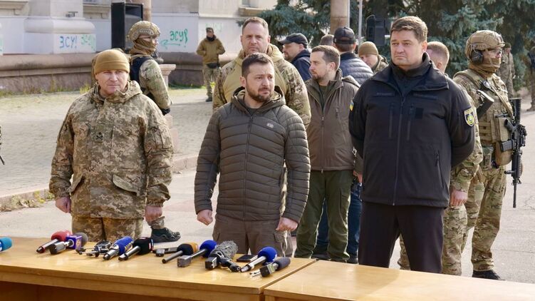 Появились фото и видео президента Владимира Зеленского в освобожденном Херсоне.