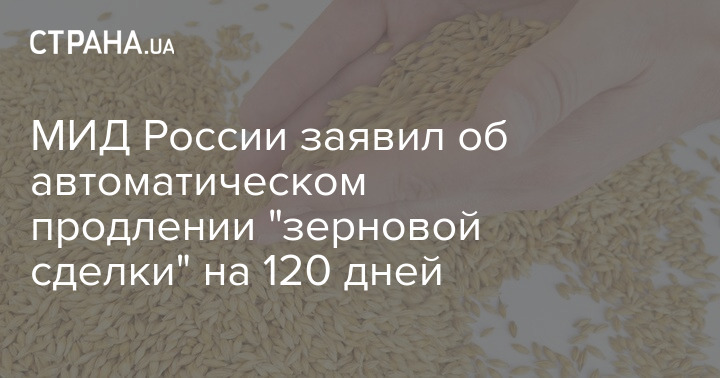 МИД России заявил об автоматическом продлении "зерновой сделки" на 120 дней
