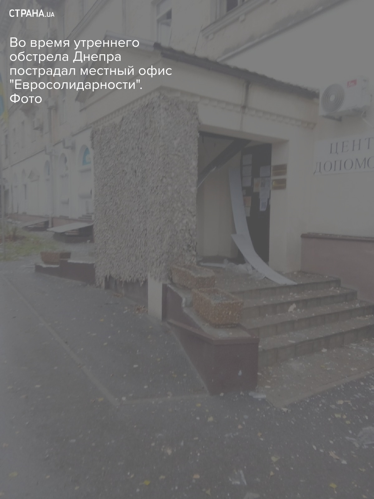 Во время обстрела Днепра, который произошел утром в четверг, 17 ноября, пострадал местный офис "Европейской солидарности".