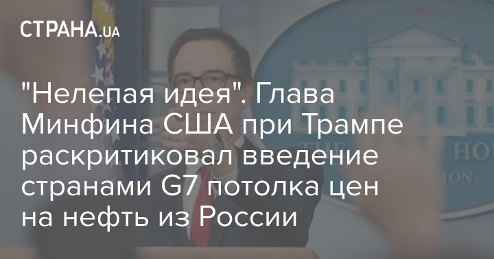 Бывший министр финансов США Стивен Мнучин раскритиковал предложение стран "Большой семерки" по введению потолка цен на нефть из России.