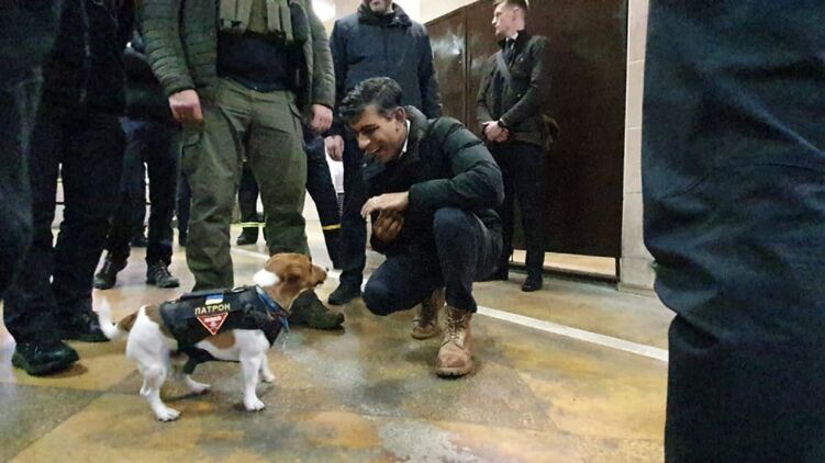 Также британский премьер-министр познакомился с одной из самых популярных военных собак в Украине по кличке Патрон, который помогает разминировать Украину.