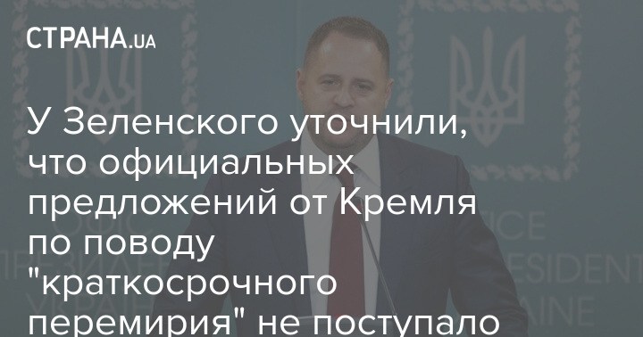 "Андрей Ермак, возглавляющий офис президента Украины, заявил, что Кремль не предлагал украинскому правительству такую ​​паузу", - пишет Politico.