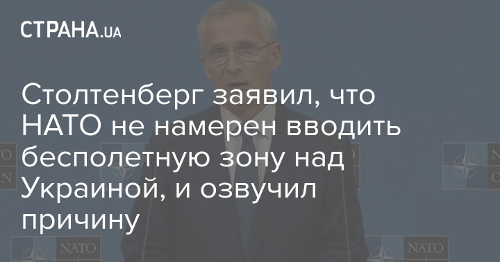 Генеральный секретарь НАТО Йенс Столтенберг вновь заявил, что Альянс не намерен вводить бесполетную зону над Украиной, чтобы не становиться стороной конфликта.