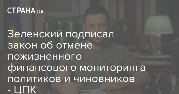Зеленский подписал закон об отмене пожизненного финансового мониторинга политиков и чиновников - ЦПК