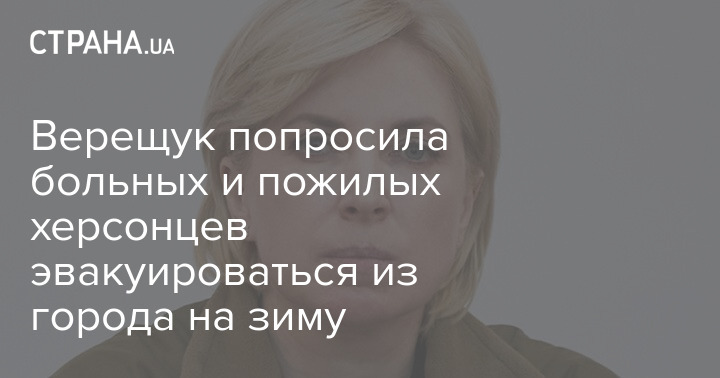 Вице-премьер Ирина Верещук призывает жителей Херсона эвакуироваться "на зимний период в более безопасные регионы страны".