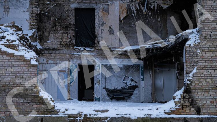 Работы Бэнкси в Бородянке под Киевом. Фото: "Страна"