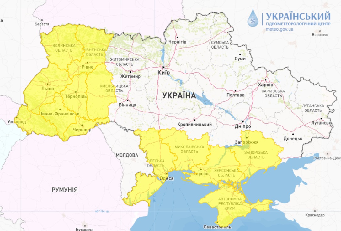 13.21 Запад Украины, кроме Черновицкой области, тоже попал в зону тревоги.
