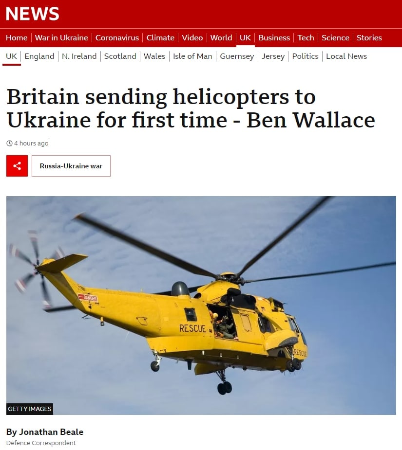 По информации BBC, первый из трех вертолетов уже прибыл в Украину.