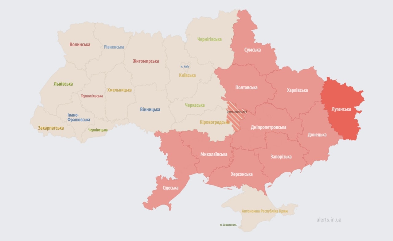 06.30 Воздушная тревога сейчас только в Луганской области, где она не стихает все время.