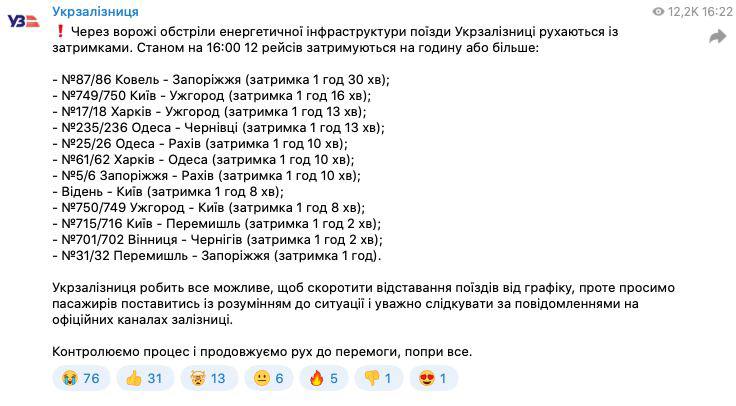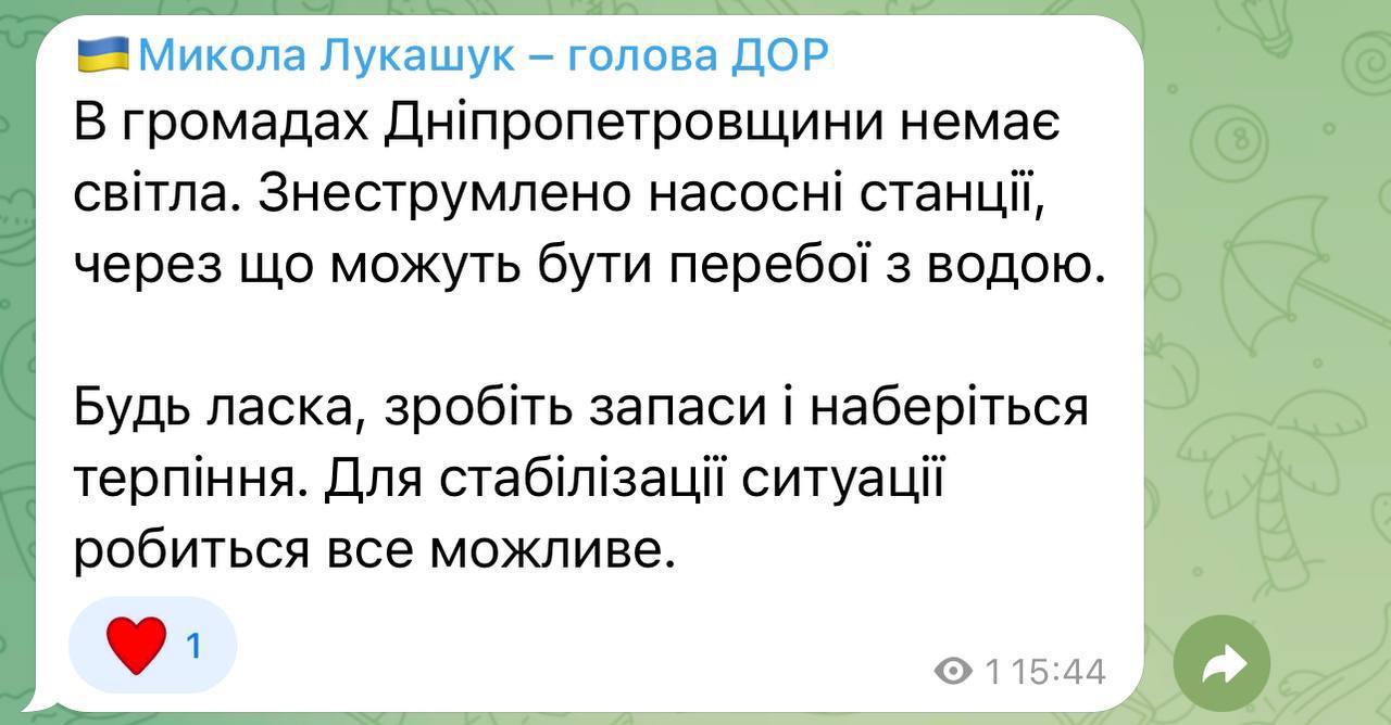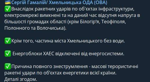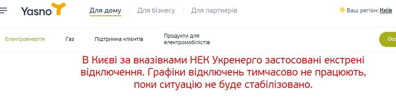 "Это следствие неоднократных ракетных атак врага на сети компании, а также на электростанции, производящие электроэнергию", - заявили в компании.