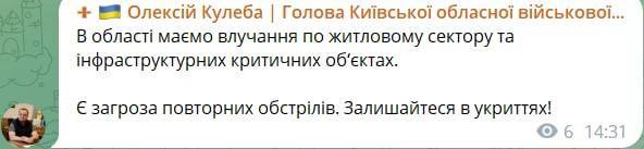13.25 Есть угроза ракетного удара по Киевской области, заявил губернатор Алексей Кулеба.