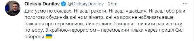 1. Украинские власти считают, что ударами по энергетике россияне пытаются склонить Украину к переговорам. Или, как вариант, довести украинцев до отчаяния длительным отсутствием света, воды и тепла и побудить их требовать от властей пойти на переговоры. "Переговоров не будет", - ответил на это секретарь СНБО Данилов.